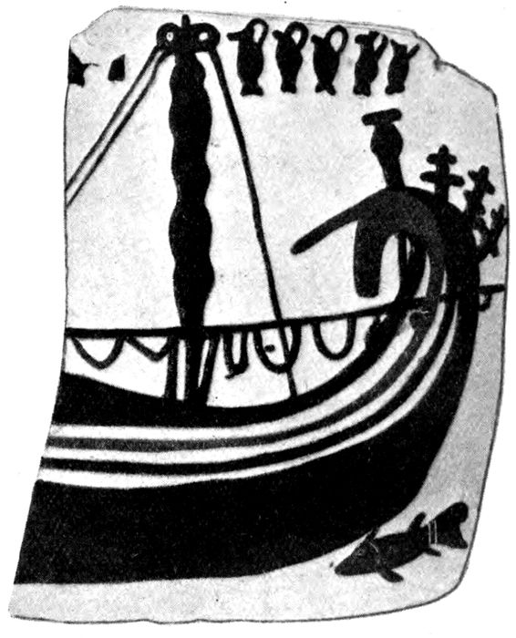 1600. Brueckner and Pernice, Ath. Mitt. XVIII. p. 153, followed by e.g. Helbig, Mém. Acad. Inscr. et B.-L. XXXVI. (1898), pp. 387 f. Against this view see Assmann, Berl. Phil. Woch. 1899, pp. 16 f., who argues merely (1) that the dead on the ships proves them Phoenician, (2) that if the Athenians depicted their own ships, there would be more ships on Black and Red Figure Attic vases. But against this note (1) that the Dipylon vases are funeral vases, (2) that, in spite of Salamis, fifth century Attic vases do not abound with pictures of enemy ships.