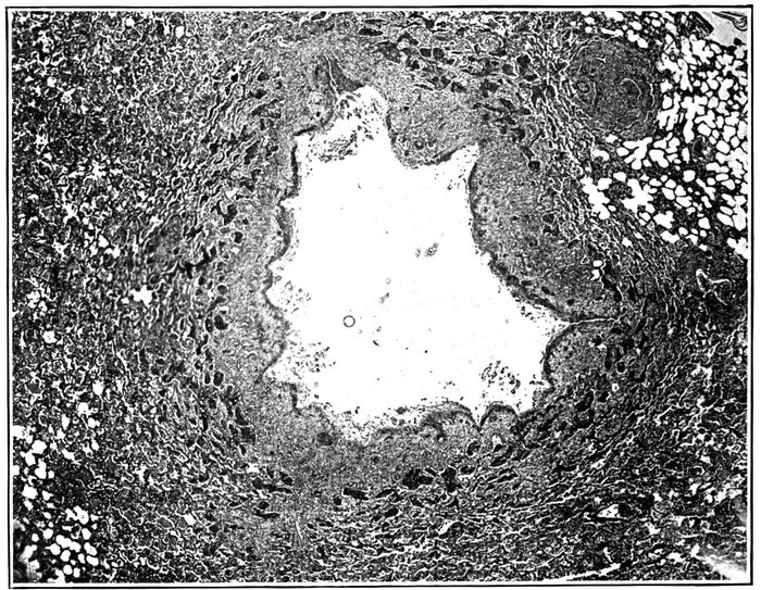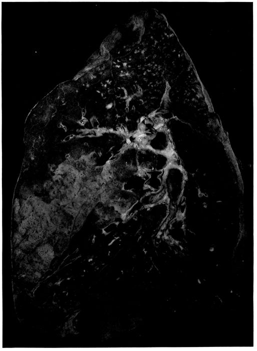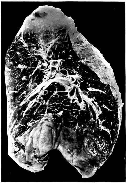 | Bronchitis, 142; Lobar Pneumonia, 154; Bronchopneumonia, 162; Peribronchial Hemorrhage and Pneumonia, 189; Suppurative Pneumonia with Necrosis and Abscess Formation, 199; Interstitial Suppurative Pneumonia, 209; Suppurative Pneumonia with Multiple Clustered Abscesses Caused by Staphylococci, 225; Empyema, Pericarditis and Peritonitis, 232; Bronchiectasis, 239; Unresolved Bronchopneumonia, 261. | ||