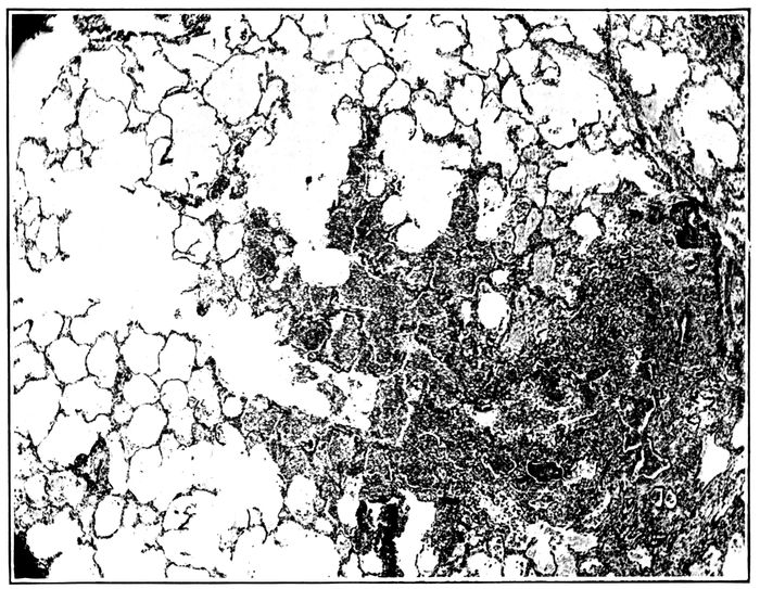 | 18. | Acute bronchiectasis showing fissures in the bronchial wall extending into neighboring alveoli which in zone about are filled with fibrin | 247 |