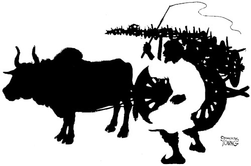 There he found a man who was in great trouble. There was a long line of wagons so heavily loaded that the oxen could not draw them through the shallow water.