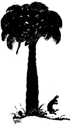 [4] At last he said to himself: "I know what I'll do. I'll get that Monkey that lives in a big tree on the river bank. He wishes to go across the river to the island where the fruit is so ripe."
