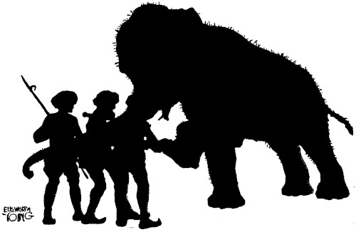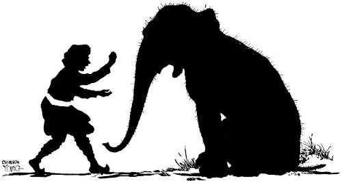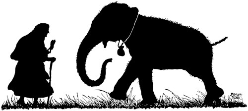 Now this Elephant had a son who was white all over—a beautiful, strong young one. Said the old Elephant to himself, "I will take my son to the place in the forest where I go to work each day so that he may learn to help the carpenters, for I am no longer young and strong."