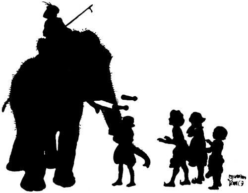 [73] One day the king came down the river and saw this beautiful white Elephant working for the carpenters. The king at once wanted the Elephant for his own and paid the carpenters a great price for him. Then with a last look at his playmates, the children, the beautiful white Elephant went on with the king.