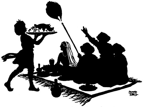 So the old Elephant told his son how the carpenters had taken good care of him when he was badly hurt and took him to them. The white Elephant did[72] as his father told him to do and helped the carpenters and they fed him well.