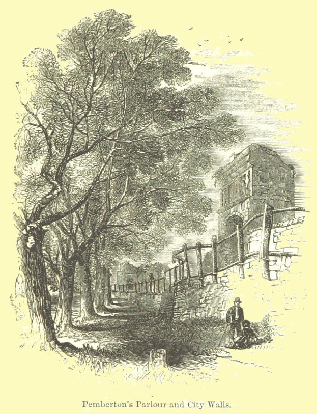 “War being declared, Chester was deemed a place of great importance; and his majesty sent hither Sir Nicholas Byron, with a commission as Colonel-General of Cheshire, and Governor of Chester. A levy of 300 men was ordered by the citizens, independent of the trained bands, and a rate was made for their maintenance. The outworks and entrenchments were carried on with such vigour, that in the beginning of the summer, 1643, the mud walls, mounts, bastions, &c. were all completed, and several effective batteries planted.”