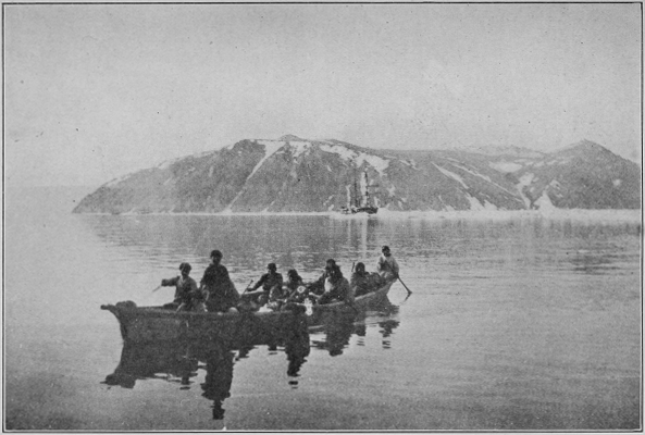Here at Herald Island we fell in with eighteen ships of the whaling fleet—all that had cruised to the westward—and it was only by good luck that some of them did not leave their [ 216 ] hulks on those desolate shores. The polar pack rested solidly against the island's western end and curved in a great half-moon to the north and east. The pocket thus formed between the island and the ice looked good for whales and the ships hunted it out carefully.