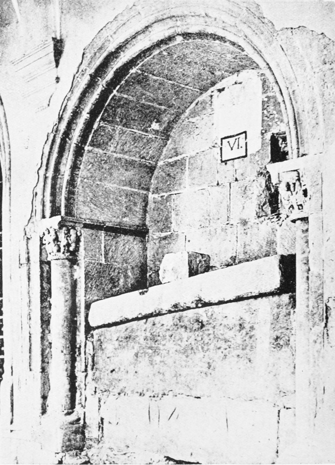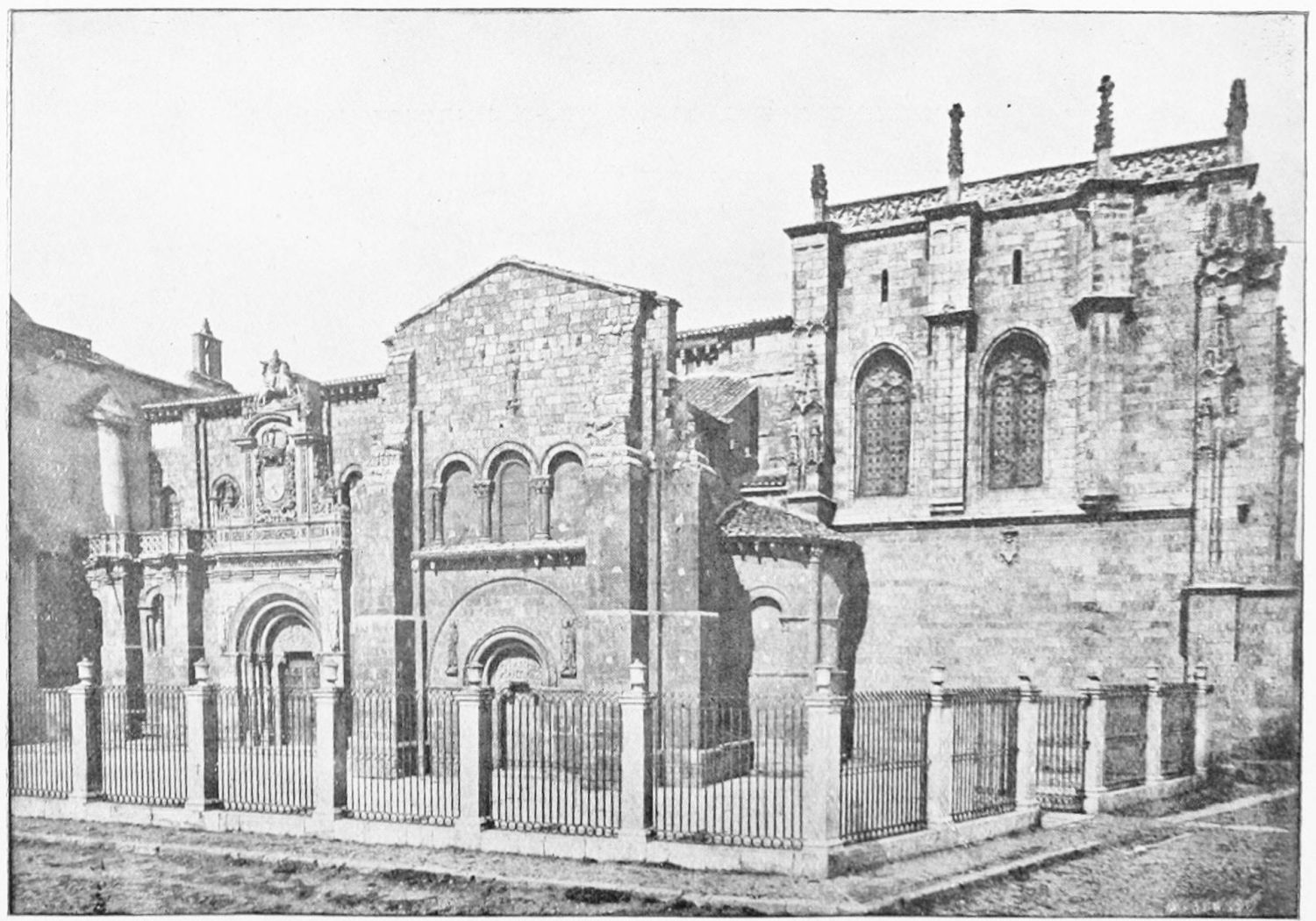 The church is in the Romanesque style, the oldest portion being the chapel of Santa Catalina, which Street thinks was the original fabric of Fernando I. The chapel was intended as a mausoleum for the royal family of Leon, but twelve tombs only remain out of thirty. The only inscriptions are on the resting-places of Alfonso V. and Sancha, the sister of Alfonso VII. Here were buried Alfonso IV., Ramiro II., Ordoño III. and his queen, Sancho I., Ramiro III. and his queen Urraca, Fernando I. and Queen Sancha, Sancho the Great of Navarre, and the murdered Count Garcia. Here, before the Pantheon was despoiled by the French in{11} 1808, might have been seen the marble and porphyry sepulchre of the brave princess Urraca of Zamora, and the urns of the Moorish and French wives of Alfonso VII. Now, the inscriptions having been wantonly defaced, it is impossible to identify the few remaining sarcophagi.