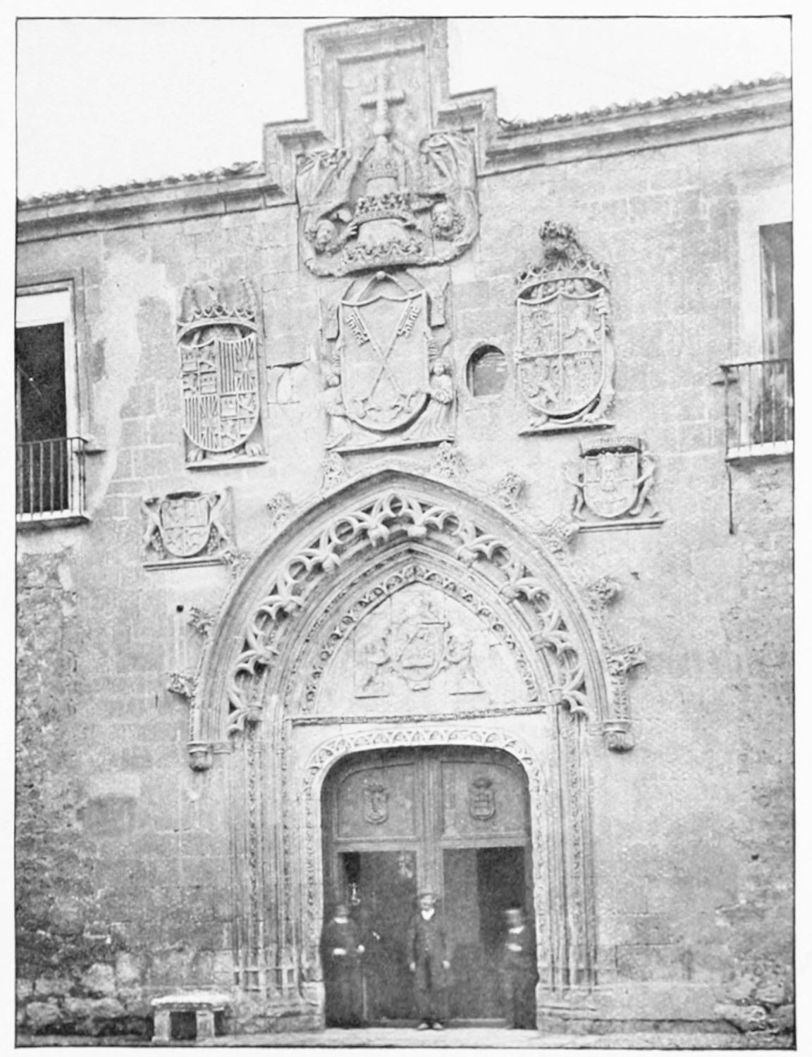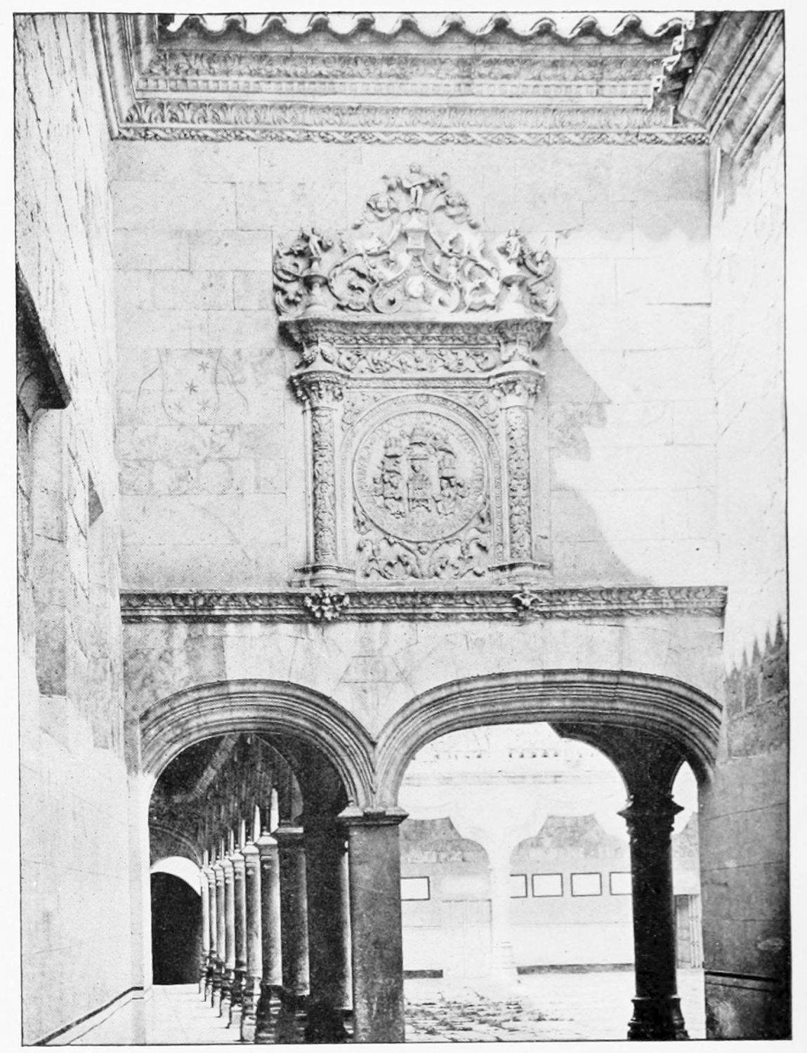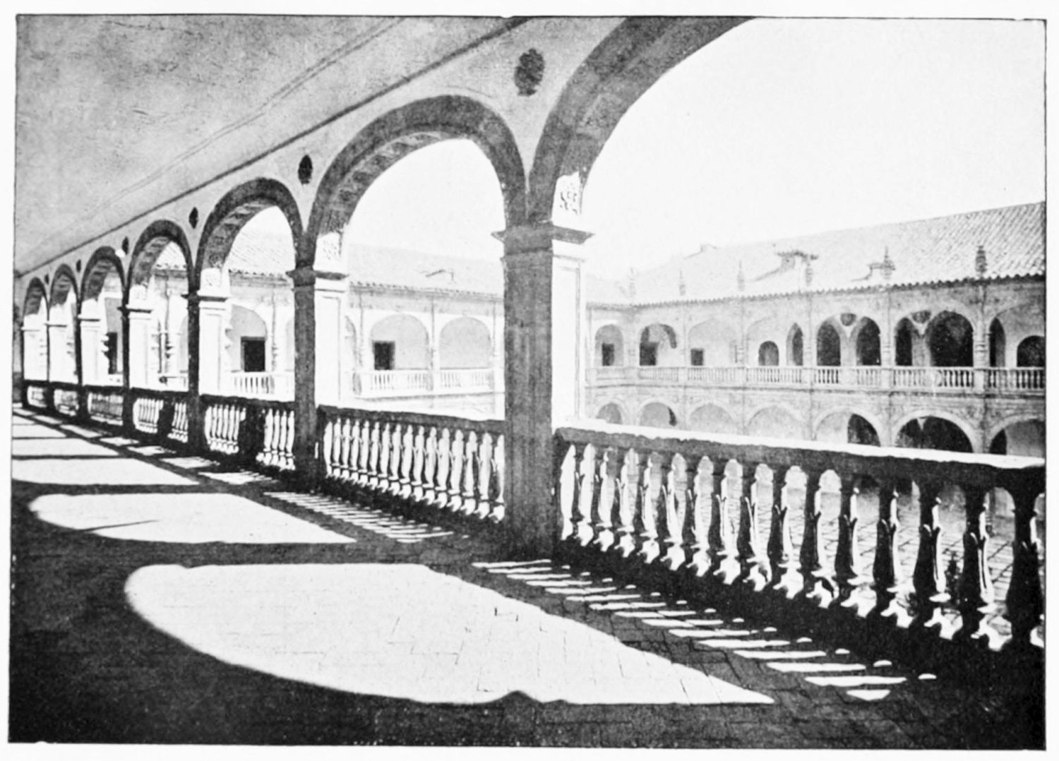 Much good work is to be seen in the cloisters, begun in the Armada year or thereabouts, but interest here chiefly centres in the Prior’s apartments where the illustrious Quevedo was imprisoned by order of the Count-Duke Olivares, from December 1639 to June 1643,—the penalty for an all too true and biting lampoon.