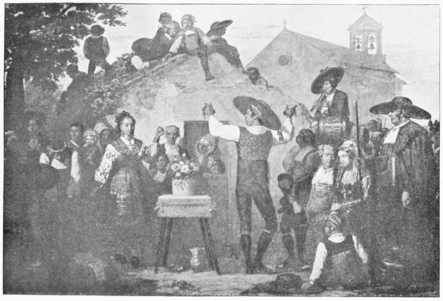 It is impossible to reproduce his colouring; but in the reproductions of his works the author has endeavoured to convey to the reader some idea of Goya’s boldness of style, his mastery of frightful shadows and mysterious lights, and his genius for expressing all terrible emotions.