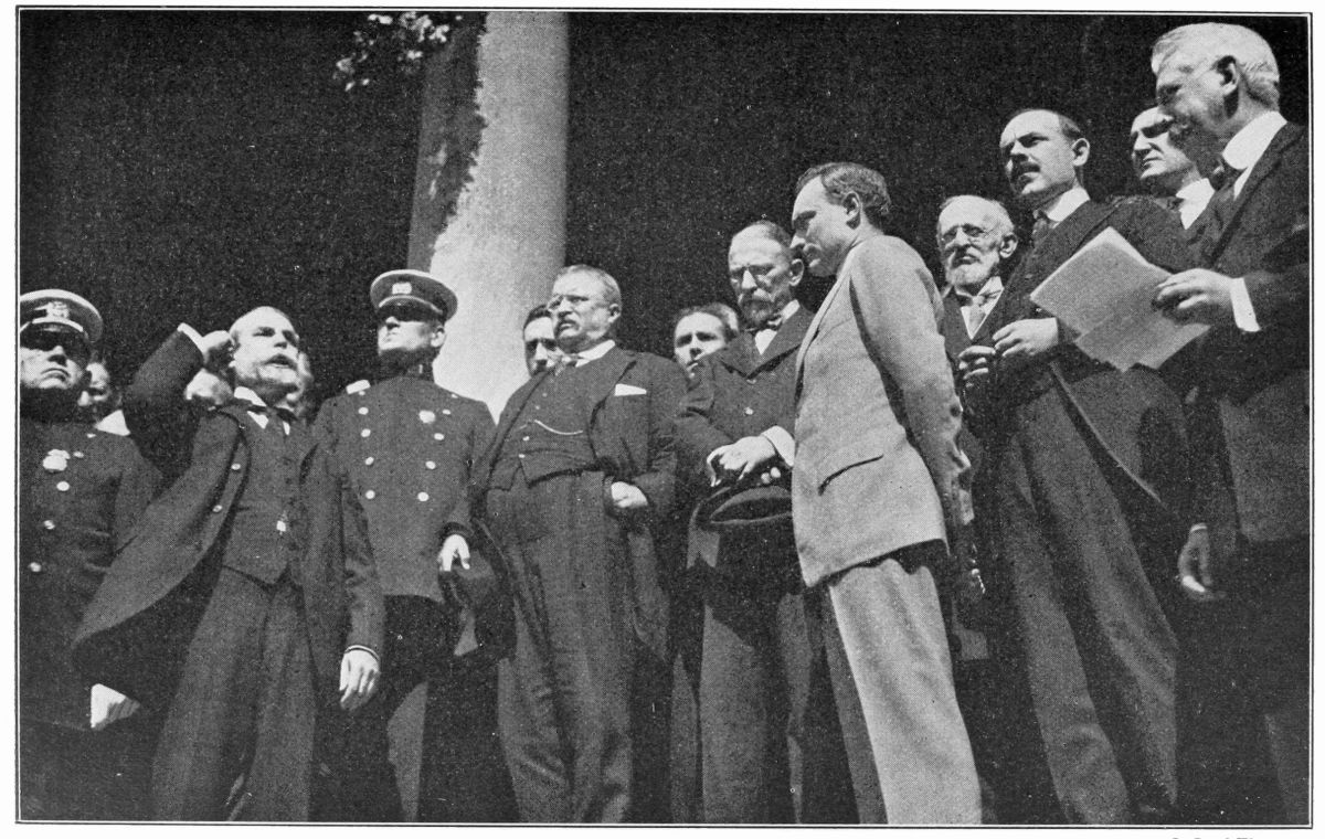 I always look back with pleasure on those years in Public School No. 14. Iron stairways, modern desks, and electric lights have been installed since my day; the Irish and German pupils have passed, the Italian tide is ebbing; on the student list Russian, Ukrainian, Greek, and Armenian names now predominate—there is sometimes even a Chinese name to be found. At exercises there, attended by three of my classmates and by Dr. John H. Finley, New York’s Commissioner of Education, I celebrated, in 1920, the fiftieth anniversary of my graduation; I took the 1,900 pupils to a moving-picture show, and commenced my now regular custom of giving four watches twice a year to members of the graduating class; but as I then reviewed the past and looked at the present, I felt that the old spirit had been well preserved and that, whatever the nationality of the children who enter the old school, they all leave it American citizens.