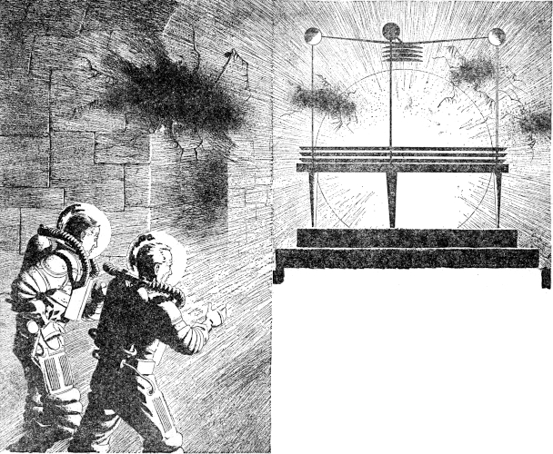 He opened them, and the spaceport of Senya Dik lay black and deserted around him, and Karlovic was gasping to him for help. Together they pulled down the lever that stopped their conveyance. They scrambled down and ran out toward the small lifeboat, slipping and stumbling, dying inside their suits. They fell into the airlock, and Durham slammed the door and spun the wheel, waiting out the agonizing seconds while the tiny chamber cleared and then refilled, and they could tear off their helmets and breathe again. They looked at each other and laughed, and hugged each other, and laughed again, and then went in to the cabin.