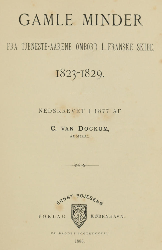 Title: Gamle Minder fra tjeneste-aarene ombord i franske skibe 1823-1829.