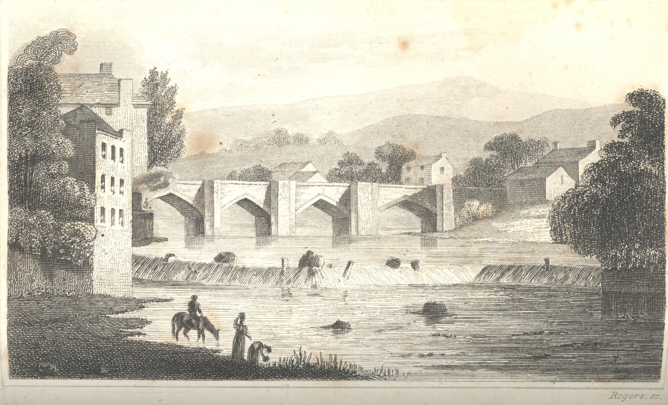 A noble Bridge crosses the Dee at the south-east angle of the Roodee, the picturesque Race-course of Chester; it is approached by a new road from the centre of Bridge-street, which passes by the castle esplanade, proceeds across the city walls, and then by an immense embankment thrown over a deep valley. The bridge consists of one main stone arch, with a small dry arch or towing path on each side, by which the land communication is preserved on both sides of the river. The distinguishing feature of this edifice is the unparalleled width of the chord or span of the main arch, which is of greater extent than that of any other arch of masonry known to have been constructed. Of its dimensions the following is an accurate delineation:—The span of the arch is two hundred feet; [0] the height of the arch from the springing line, 40 feet; the dimensions of the main abutments, 48 feet wide by 40, with a dry arch as a towing path at each side, 20 feet wide, flanked with immense wing walls, to support the embankment. The whole length of the road-way, 340 feet. Width of the bridge from outside the parapet walls, 35 feet 6 inches, divided thus: carriage-road, 24 feet; the two causeways, 9 feet; thickness of the parapet walls, 2 feet 6 inches. Altitude from the top of the parapet wall to the river at low water mark, 66 feet 6 inches. The architectural plan of this bridge was furnished by the late Mr. Thomas Harrison; Mr. James Trubshaw, of Newcastle, Staffordshire, was the builder; Mr. Jesse Hartley, of Liverpool, the surveyor. The bridge was formally opened in October, 1832, by her Royal Highness the Princess (now Queen) Victoria, on occasion of her visit and that of her royal parent, the Duchess of Kent, to Eaton Hall. As a compliment to her noble host, the bridge was named Grosvenor Bridge by the young Princess.