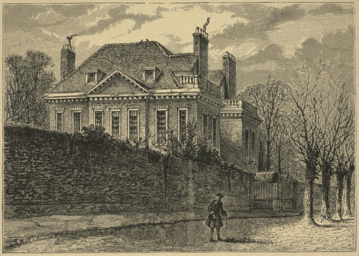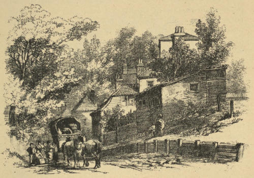 [233] There was, I am told, an old weather-boarded house opposite the Wells Tavern called Willow House, which remained till some twenty years ago, when its site, and that of its large garden, were built upon, and six or more houses were erected there. This was probably the type of the early houses in Well Walk.