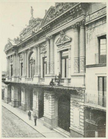 The real old spirit of Carnival is abroad, and the whole thing is conducted with so much good taste and with so little rowdyism that it is easy to see why it attracts such large numbers from Buenos Ayres, where the low class element so abused the liberties of Carnival in past years that it was prohibited, and is observed only to a small extent in some of the suburbs. The use of paper confetti and serpentinas, of which tons must be sold during the festivities, litters the streets and festoons lamp-posts, telephone wires, and window railings with streamers which, in the less accessible places, hang for months afterwards as mournful reminders of the merry time that was; but the municipal authorities show a remarkable celerity in clearing away all their temporary provisions for the festivities. By the beginning of March, Montevideo was its own staid self again, and by the end of that month the short holiday season had utterly passed, the bands at the playas had played their last tunes, the Hotel Pocitos and the Parque Hotel had closed their doors, no gaily-dressed throngs were to be seen on the promenades, and people were beginning to think of their social engagements for the coming winter; for it is in the autumn and winter season that the Montevideans themselves enjoy most their social round, when their theatres are occupied by numerous dramatic and operatic[407] companies from Italy, Spain, and France, when political enthusiasts harangue their audiences, and lecturers give their conferencias on literary and scientific subjects.