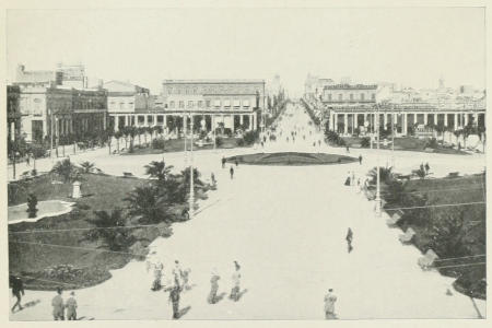 The greatest scandal of all is that laid at the door of President Batlle y Ordoñez, and may yet assume the importance of an international dispute. During the presidency of his predecessor, an international syndicate, in which I believe both French and English shareholders invested several millions of money, was granted a concession to carry out a huge enterprise, which would so vastly enhance the appearance of the town and add to its wealth that, once effected, not even Rio de Janeiro could be cited as a finer example of a modernised city. At the present time, the poorest part of Montevideo is that lying along the southern margin of the promontory, eastward towards the suburb of Ramírez. It[422] has a rocky fore-shore, and the water there is comparatively shallow, so that it would be possible to reclaim a considerable amount of land along this side of the town, and build a magnificent marine drive, extending all the way from the oldest part of the city to the suburb mentioned, and thence linking up with the fine promenade at Pocitos. Many maps of the city are now in circulation with this improvement shown as though it actually existed, the great highway by the waterside being marked as “Rambla Sud América.”