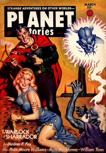 Once he almost died under the biting whip, and in that moment of pain and numbness, when his senses seemed about to float from his body, the cat-woman leaned close and her furry voice whispered, "Speak your secret to me, man of Terra! Tell me the weapon that slays the sfarri!"