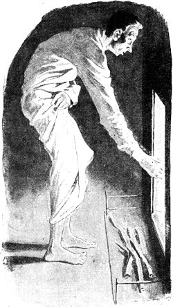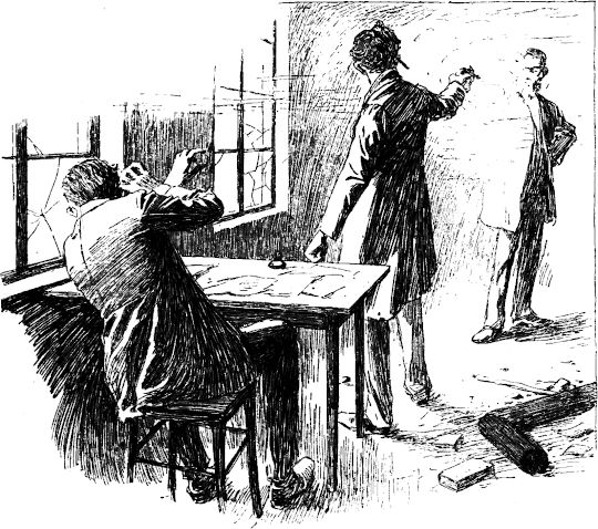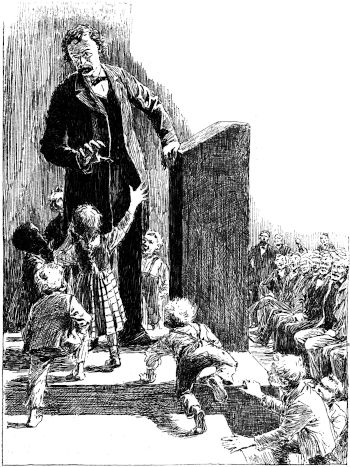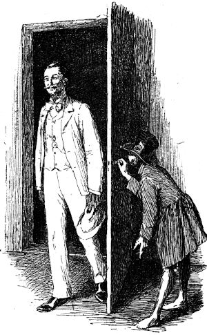 Nun fing er an den Seifenschaum zu rühren und sich dabei im Spiegel zu besehen; von Zeit zu Zeit hielt er inne und trat näher herzu, um sein Kinn in Augenschein zu nehmen und einen kleinen Pickel zu besichtigen. Dann seifte er mir eine Seite des Gesichts gründlich ein und wollte eben die andere in Angriff nehmen, als zwei sich beißende Hunde seine Aufmerksamkeit fesselten. Er lief ans Fenster, blieb da stehen bis der[15] Kampf vorbei war und verlor beim Wetten über den Ausgang zwei Schillinge an die andern Barbiergehilfen, was mir große Befriedigung gewährte. Nun strich er mir die Seife vollends mit dem Pinsel auf und begann sie mit der Hand einzureiben.