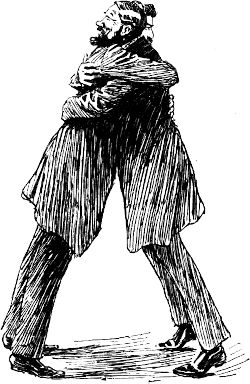 Endlich kam ich an die Reihe. Eine Stimme rief: »Der nächste!« und ich geriet natürlich in die Hände von – Nr. 2. So geht es immer. Ich äußerte schüchtern, daß ich Eile habe, was ihm einen gerade so tiefen Eindruck machte, als hätte er es nicht gehört. Er schob mir nun den Kopf in die Höhe und legte mir eine Serviette unters Kinn. Er fuhr mir mit den Fingern in den Halskragen und stopfte ein Handtuch hinein. Er grub seine Klauen in mein Haar und sagte, es müsse beschnitten werden. Ich erwiderte, ich wolle es nicht schneiden lassen. Nun wühlte er wieder darin und meinte, es sei für die jetzige Mode ziemlich lang, besonders hinten; es müsse durchaus unter die Schere. Ich sagte, es wäre erst vor einer Woche geschnitten worden. Darauf sann er einen Augenblick gedankenvoll nach und fragte dann mit verächtlicher Miene, wer es besorgt habe. »Sie!« antwortete ich schnell. Da war er in der Falle.