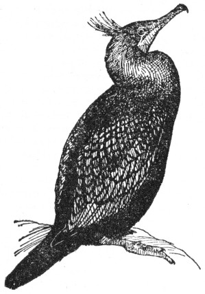 Description.—Size large; bill long and sharp; tail very short, with legs sticking out behind. Adults in spring: Upperparts black, with bluish and greenish reflections; patches on throat and sides of neck streaked with white; back and wings marked regularly with rows of white squares; underparts silvery white; sides black, spotted finely with white; eyes red. Immature birds and adults in winter: Upperparts blackish, margined with gray and without white spots; throat and neck grayish; underparts white. Length: about 30 inches.