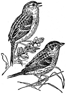 The soft, brief warble of the Bluebird in spring, and the gentle farewell it sings in the fall as it flies over, are to be classed among the 161 sweetest of bird music, to my way of thinking. The Bluebird is not only beautiful in song and in color, but it is decidedly beneficial, and since it rears two or three broods of young a year, when it can, it destroys much insect life in feeding the hungry young which eat proportionately more than their parents.