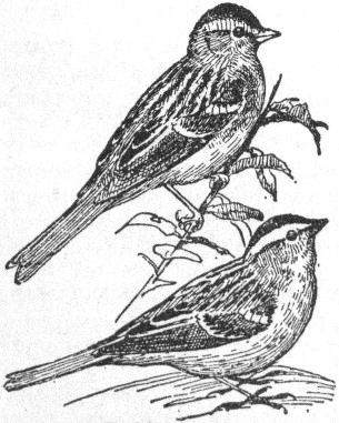 Description.—Smaller than English Sparrow. Top of head and throat black; cheeks white; rest of upperparts grayish; underparts grayish white, washed with brownish on sides. Length: 5 inches.