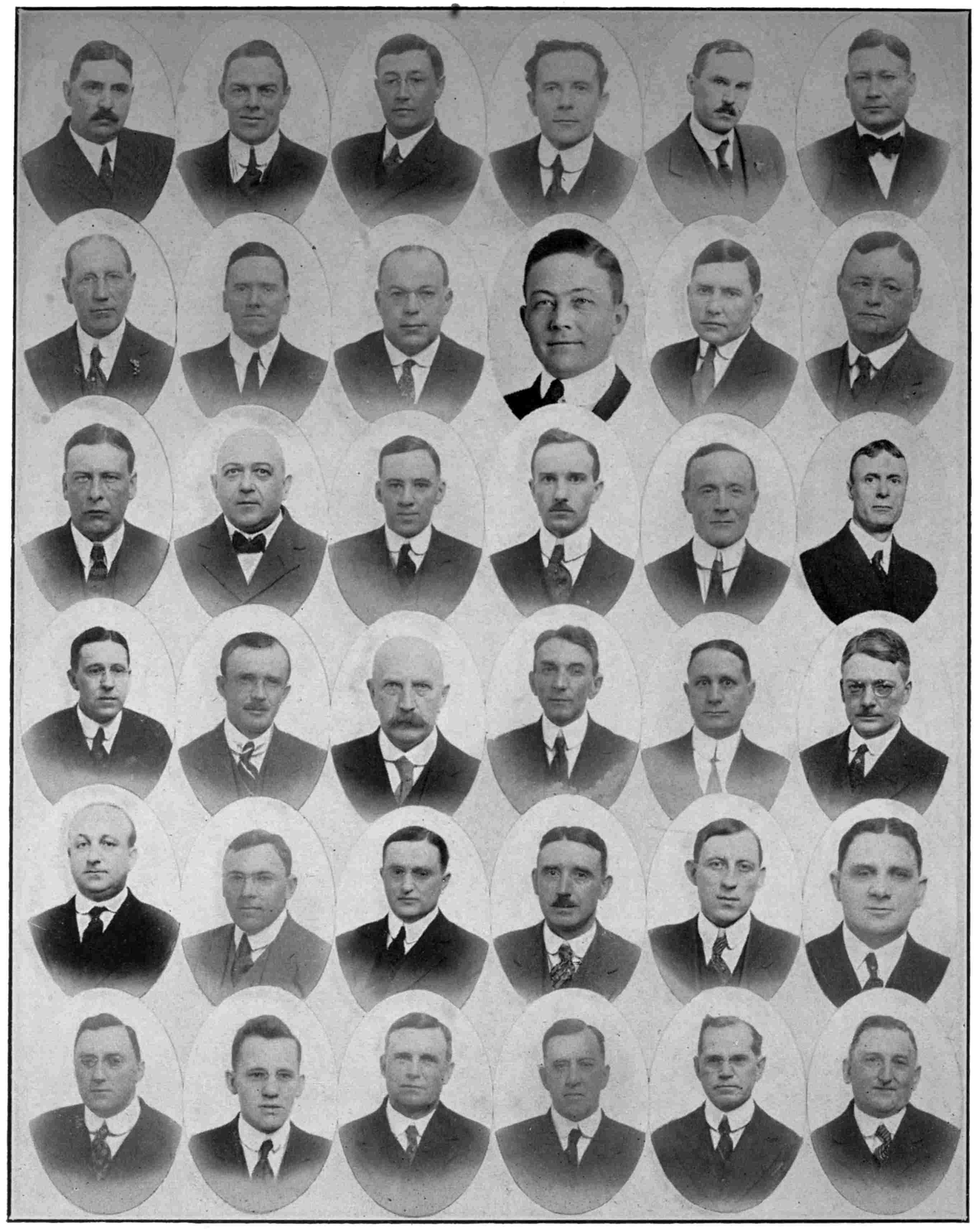 Lower Row—J. Anderson, C.P. & T.A., Hamilton; G. W. Norman, T.P.A., Chicago; D. P. Drewery, T.P.A., Buffalo; R. McC. Smith, C.P. & T.A., Detroit; J. E. Crossley, T.P.A., Montreal; C. E. Horning, D.P.A., Toronto; F. W. Wherrett, T.P.A., Detroit; W. S. Cookson, Gen’ Pass’r Agent, Montreal; G. N. Wilson, T.P.A., Kansas City; J. H. Corcoran, T.P.A., Moncton, N.B.; C. E. Jenney, G.A.P.D., Vancouver, B.C., and H. R. Charlton, Gen’l Advertising Agent.