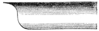 One exceedingly interesting example, highly valuable as suggestive study,—one quite sui generis, and perhaps on that account viewed with more of prejudice than relish, is the internal Order of the Temple of Apollo at Bassæ, delineated and described by Mr. T. L. Donaldson, in the supplementary volume to Stuart’s ‘Athens.’ This example, which seems to have found favour only in the eyes of Mr. C. R. Cockerell, who has employed it on more than one occasion, has, as already intimated, four similar faces; yet if it so far agrees with many Roman and modern Ionic capitals, it differs from them totally in every other respect. While the faces of the latter are formed rather by merely sticking on the volutes diagonally, instead of turning them, so in the example now under notice, each face may be said to be arched, since it curves downwards on each side from the [Pg 37] middle of its upper edge, instead of being there straight or horizontal beneath the architrave. Owing to this circumstance the faces of the capital have the look of being rather affixed to than properly connected with the abacus, and there is a certain degree of incongruousness and want of finish. So far, then, there is room for improvement, and perhaps in some other respects also; yet upon the whole there is much to approve of and admire in this capital, among whose peculiarities it deserves to be noted that the space between the volutes is not above half the width of the volutes themselves. Nor is [Pg 38] it for its capital alone this that example of the Order is remarkable, its base being equally peculiar, on account of its simplicity of form, and still more so, perhaps, on account of its very great expansion, spreading out below to considerably more than two upper diameters of the shaft; which perhaps causes the capital to appear rather too small in comparison with it. This base is all the more remarkable because it differs entirely from what is called the Ionic base, although not employed by the European Greeks for that Order, who made use of what is styled the Attic base, consisting of two tori and a scotia, or deep curved hollow, between them. The proper Ionic base, or what is so called, differs from every other form of that member, being greatly contracted in its lower mouldings, which, if not a deformity, is not a particular beauty, as it gives the base too much the appearance of being reversed or turned upside down; and hence it is difficult to assign any probable or sufficient motive for such conformation of mouldings in the foot of a column. Perhaps the only modern instance of the application of that base occurs in the tetrastyle (four-columned) portico of Hanover Chapel, Regent Street, whose Order is copied from the Temple of Minerva Polias at Priene, in Asia Minor; to which example we shall presently have occasion to refer again when we come to speak of the Ionic entablature. Before so doing we have to call attention to another peculiarity in the columns within the Temple at Bassæ, whose base is above shown: we allude to the mode in which the shafts are fluted, which seems to indicate a transition from the Doric to the Ionic style, the fillets being exceedingly narrow, and the channels shallow and very slightly curved, which gives the shaft altogether a different character from that attending the usual mode of fluting practised for this Order.