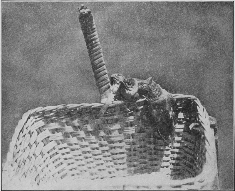 The cleverest of the four was also the biggest; so it was easy to tell him from the rest. Again, he was always the first to venture. But as he neared the tree, when he had almost reached his goal, he began to drop; and he fell to the ground. Fearing some harm might come to him, I went down quickly with the long-handled dust mop. It was fuzzy, and soft for him to rest on. With it I hoisted him to a low branch. Mother and Father Wren scolded, but went to the young bird as soon as my back was turned. Birds do not like to have people meddle with their affairs; but sometimes when they are in trouble we can help them.