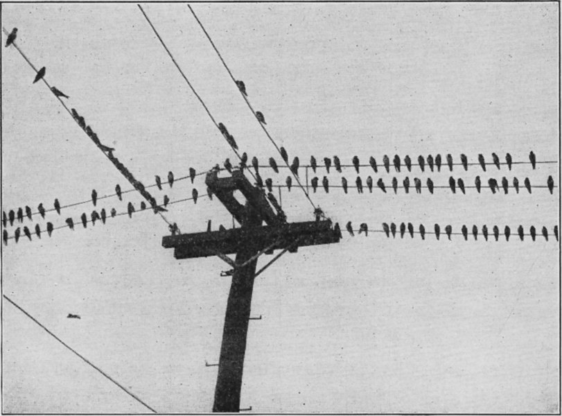 Maybe this little mishap showed Mother Wren that her babies were not yet strong enough to fly so far. Anyway, she waited until the next day before she urged the others to go. Even then she was not quite decided. At dinner time the three were still on the porch. They had reached the highest rung of the trellis. In the afternoon, when I returned from 8 school, they were gone. Father Wren was again singing his cheery songs. He had kept pretty quiet while the little ones were learning to fly. Why? Because he did not want anyone to find out where they were.