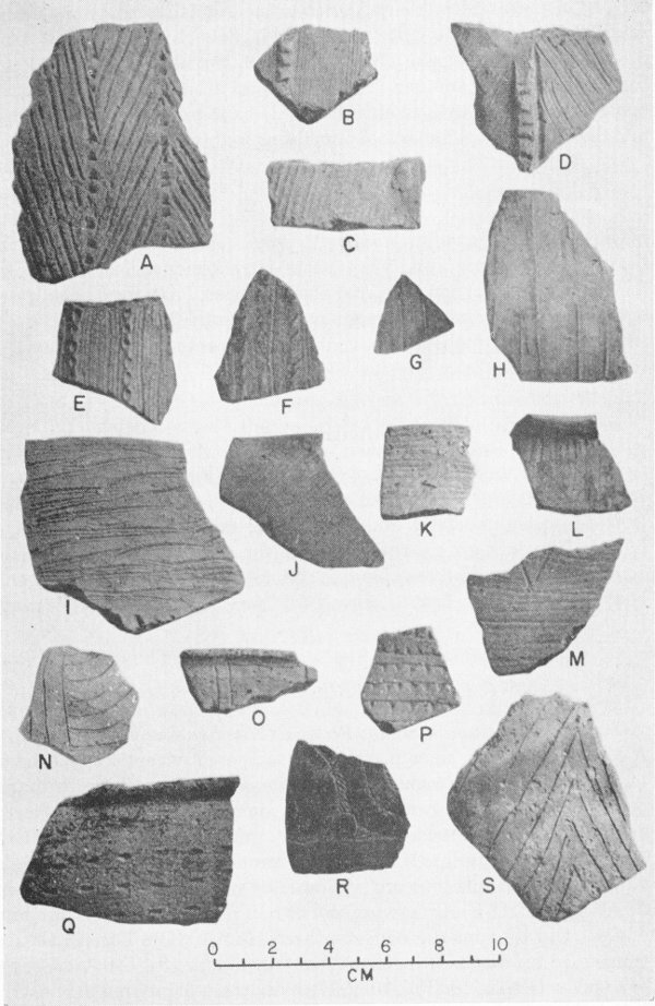 The plain sherds have paste characteristics similar to the decorated types already described. Nine of the 644 sherds are bone tempered.