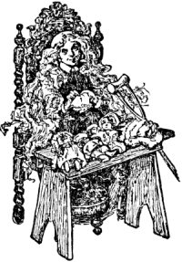 Dr. Johnson. [Shaking his head solemnly.] Nay, sir, a spendthrift you were born, but an honest man I'll make you, if this money [holding up a large leather purse] will discharge your outstanding accounts. There shall be no plum-colored velvets, I promise [Pg 223] you, until justice is done. But [observing the downcast looks of the children] you, my little mistress, shall not be deprived of your finery, nor the lad of his promised toy.