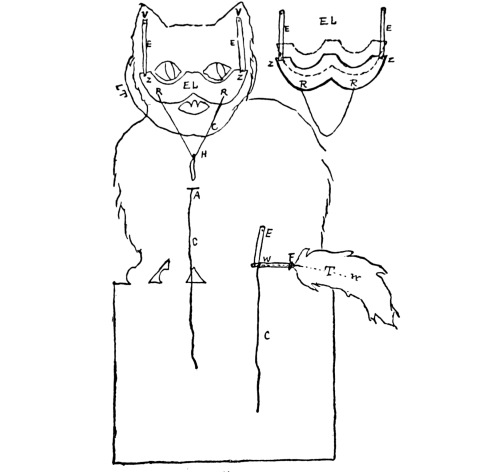 [The Fairy touches him with her wand. He begins to turn about, displays his curly tail, and spits at the little Maiden when she slyly pulls it. Little Maiden strokes his back, and he sings a meow solo to the tune of “Auld Lang Syne.” All applaud.] [Pg 7]