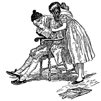 Dick. I’d a deal of trouble to give the letter to the old gentleman in the Temple. Frank, the black man-servant, said at first that his master, who could write a great book like the dictionary, all out of his own head, had no call to be bothered with forward London lads. Then he made me wait a long time while Dr. Johnson drank tea with [Pg 212] Miss Williams, the little old blind lady that lives there. But at last the Doctor read your letter and gave me this one for you, with a penny for myself. Then he called very loud for a man-servant, and said a lot of things I couldn't rightly understand, the words were so long; but he said “Scatter-brain!” at the end. Could that mean you, sir?
