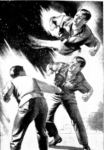 Irritation flamed into anger. Raising his hand, he was about to push them aside when the hot searing pain of the bayonet struck him, hurling him back against the wall. For an uncomprehending moment he leaned immobile, his mouth gaping, his eyes awed. Then, realizing the only way out, he relaxed. The agony subsided and vanished. So that was it, he thought bitterly. So that was the ultimate weapon—not the indoctrination. For the rest of his life he was to be burdened with the possibility of that vivid torture whenever he so much as considered using force.