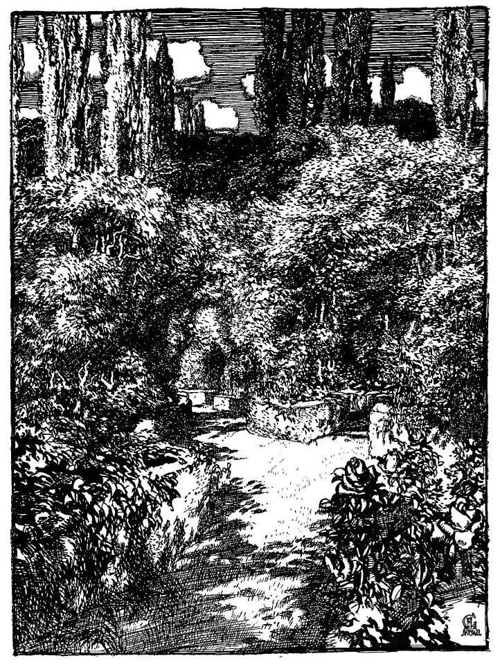 The photographic reproductive processes began now to change the spirit of the illustrator’s dream. Both in black-and-white and colour the artist had to readjust his methods and adapt them to the new mechanical conditions—to the domination of the camera, in fact. Already the photographer had become an intermediary between the artist and the wood-engraver, though the designer’s lines were still at the mercy of the craftsman’s knife. Now the artist made his designs with the camera in view, knowing that his line would reproduce exactly as he drew it. Naturally this change had a considerable influence on the character of the designs made for book-illustration. But,{8} meanwhile, there were artists, individual and in groups, who, setting themselves against the innovating photographic reproduction in book-illustration, sought by the older methods to make books beautiful with pictorial adornment. Charles Ricketts and Charles Shannon, two artists inspired always by high ideals, to whose originality and initiative modern book-decoration owes a great deal, issued The Dial in 1889, and this was the beginning of an important movement in the making of beautiful books. Among the pages Mr. Shannon set those exquisite lithographs of his in which his pictorial poetry is most eloquent; while from this publication we may perhaps date the modern revival of original wood-engraving—Messrs. Ricketts, Shannon, Sturge Moore, Reginald Savage, and Lucien Pissarro cutting their lovely designs upon the wood. From the enthusiasm that produced The Dial grew the Vale Press, which, with its remarkable series of beautiful books, has given so much joy to bibliophiles, a joy that Mr. Pissarro continues to give with the delicately lovely books he issues from his Eragny Press—the Vale’s successor—books in which the ideal of harmonious decorative relation between the lettering of the page and its pictorial adornment is logically realized with exquisite results. How splendidly this ideal was realized by William Morris in his books from the Kelmscott Press has already been shown in “The Art of the Book” (the Special Spring Number of The Studio, 1914); to speak further of it here were beyond my province. I wish only to suggest its great influence for beauty on the book-decoration of to-day and yesterday, an influence one would wish to see still more widely extended.