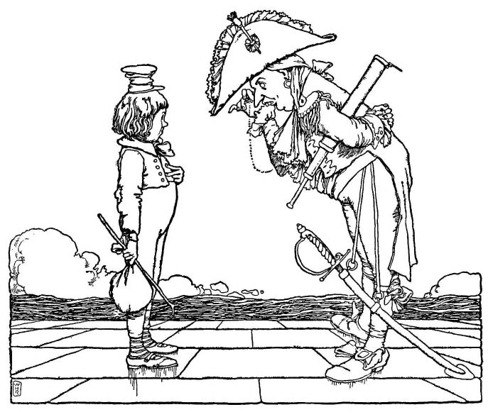 “AT LAST THEY MET AN OLD WOMAN, BENT WITH THE WEIGHT OF MANY YEARS.” FROM “BLACK TALES FOR WHITE CHILDREN” (CONSTABLE AND CO.)