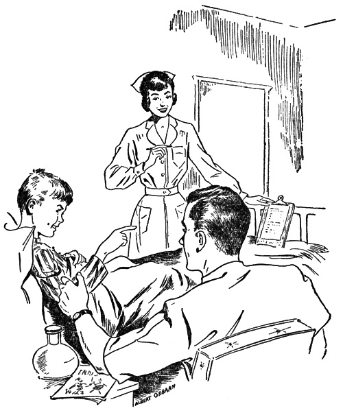 Gerald cleared his throat. “And that poses a problem,” he said in a very business-like voice. “Dr. Barsch is trying to convince me to go into surgery. I’ve always been interested in psychiatry. But I think I’ll stay on for a while and see what surgery is all about. After all, they’re sort of my family, now. And I’ve been away from home too long.”