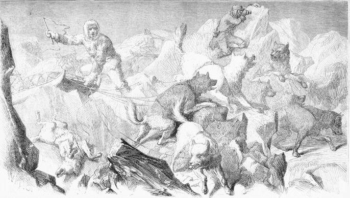 I occupied myself while the schooner lay at Upernavik - 444 - with visiting a magnificent glacier nine miles wide, which discharges into a fiord named Aukpadlatok, about forty miles from the town. Near this glacier there is a hunting-station of the same name which is superintended by a Dane, called Philip, who lives there in the enjoyment of peace and plenty, with an Esquimau wife and a large family of children, among whom are four full-grown half-breed boys,—the best hunters, I was told, north of Pröven. My surveys detained me several days at Philip's hut, and, before I left, I had made full arrangements with himself and his seal-skin-coated boys and his wife and daughters, to make sledges, for which I gave them abundant materials, and fur-clothing, and skin-lines; and I engaged them to rear and accumulate dogs for me, that I might be well supplied when I came back the next year.