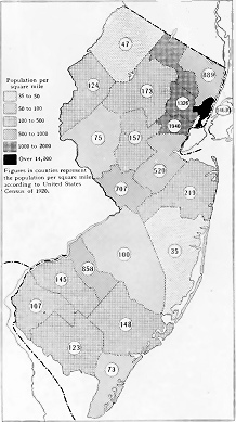 Jersey City and its Environs.—A long narrow peninsula lies between the Hudson River and New York Bay on the east, and the Hackensack River and Newark Bay on the west. On this peninsula are located many prosperous cities. On the southern half, which is in Hudson County, is found the most densely populated part of the state, with many large cities of great industrial and commercial importance.