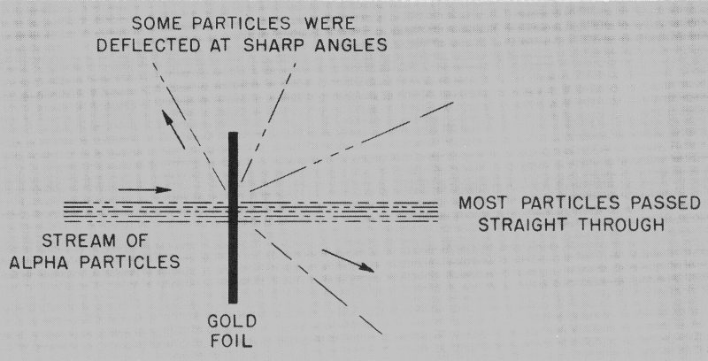 One experiment by Rutherford and his co-workers had a most profound effect on the understanding of atomic structure. What they did was to direct a stream of alpha particles at a thin piece of gold foil. The results were astonishing. Almost all the particles passed straight through the foil without changing direction. Of the few particles that did ricochet in new directions, however, some were deflected at very sharp angles. (See Figure 2.)