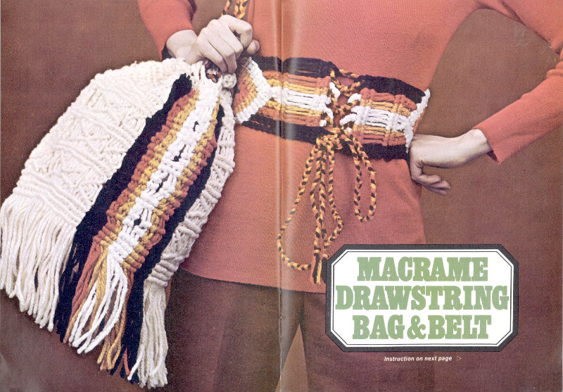 EQUIPMENT: T-pins. Scissors. Tape measure or ruler. Knotting board (brown paper marked off in one inch squares for gauge. Place over knotting board of Celotex, cork, or padded cardboard). Rubber bands for bobbins (wind lengths overhand, secure with rubber band and release as needed). 1-yarn needle.