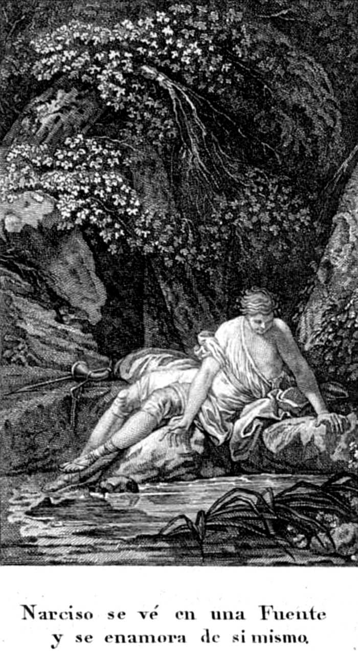 | Estampa 46: | Narciso se ve en una Fuente y se enamora de sí mismo. |