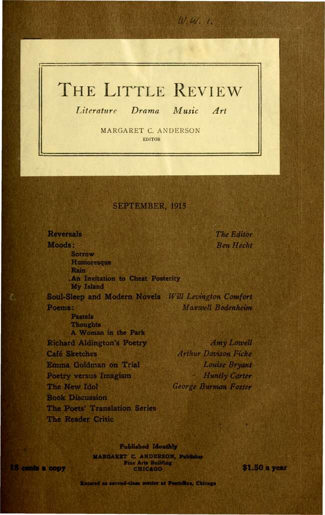 Title: The Little Review, September 1915 (Vol. 2, No. 6)
