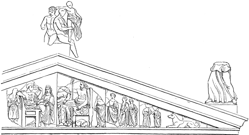 A little further down the coast, and facing nearly due south, is Assus, a site which has been visited by many travellers, as Walpole, Choiseul-Gouffier, Raoul-Rochette, Fellows, and Pullan. The most ancient monuments of Greek art in the Louvre at Paris were removed thence. The position of the chief buildings is very grand; indeed, in Strabo’s time, Assus was considered as a fortress almost inaccessible.[5] Its 7ruins are still remarkably perfect, one gate at least, of triangular construction, resembling those at Mycenæ and Arpinum. There are, also, vestiges of a hexastyle Doric temple, showing some analogy with those at Pæstum. Seventeen large fragments from the metopes and two façades of the Temple were ultimately removed to France by Capt. Chaigneau, together with a Doric capital. They were found scattered over the slope of the hill, and must have been removed at some time or the other, probably for building purposes; indeed, fragments of similar pieces were also noticed in some of the neighbouring houses. In character of workmanship, the sculptures resemble the Æginetan marbles now at the British Museum. But their execution is not so effective, the material of which they are made being the coarse red stone of the neighbourhood. To the same cause is, perhaps, due the fact that they had not been carried away long ago. Had they been of fine marble, they would have been valuable plunder. Sir Charles Fellows, speaking of Assus, says, “After depositing my baggage, I took the most intelligent Turk in the place as my cicerone.... Immediately around me were the ruins, extending for miles, undisturbed by any living creature except the goats and kids. On every side lay columns, triglyphs and friezes, of beautiful sculpture, every object speaking of the grandeur of this ancient city. In one place I saw thirty Doric capitals placed up in a line for a fence.” Sir Charles Fellows gives a drawing of one of the friezes now in Paris, and adds, “I then entered the Via Sacra, or Street of Tombs, extending for miles. Some of these tombs 8still stand in their original beautiful forms, but most have been opened, and the lids are lying near the walls they covered, curiosity or avarice having been satisfied by displacing them.... These ruins are on a considerably larger scale than those of the Roman city, and many of the remains are equally perfect. Several are highly ornamented and have inscriptions; others are as large as a temple, being twenty to thirty feet square; the usual height of the sarcophagus is from ten to twelve feet.”[6]