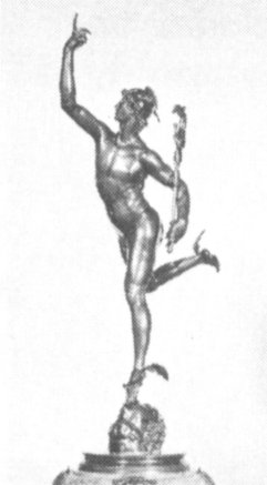 The vigorous movement, muscular lines, and above all the grace and lightness of the bronze figure capture in this Mercury the fleeting presence of an ancient god. Protector of the forlorn and travel weary, patron of shepherds, merchants, wayfarers, and even thieves fleeing the law, Mercury was the bearer of news and tidings for the gods of mythology. He was known by his winged feet, a 3 traveler’s cap with wings, and his herald’s staff, a caduceus, perhaps given him by Apollo, who had the power of healing. The design of Mercury’s caduceus with its two serpents intertwined has been traditionally associated with medicine and is the adopted symbol of the medical profession. This masterful piece was probably made by Adriaen de Vries, a Dutch artist trained in Italy, and was modeled after a Mercury completed twenty years earlier by Giovanni Bologna.
