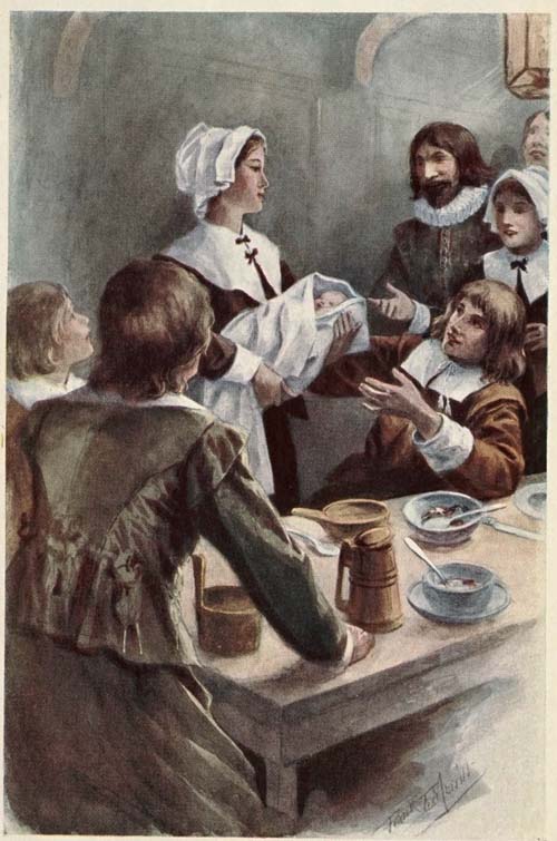 “A citizen! A citizen! It is an omen!” they cried, and little Peregrine[28] White was handed around and admired while the Pilgrims sang, with lusty voices, the good old English carol, “Unto us a child is born.”
