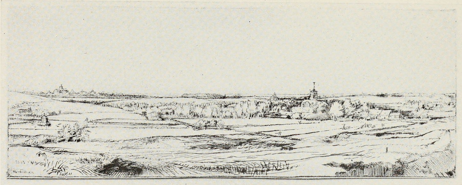 “You have only to see the prints to know it.” Well, let us look at two of them: Rembrandt’s View of Amsterdam, of 1640, and Whistler’s Zaandam. “Why drag in Velasquez?” the master of[Pg 274] the gentle art of making enemies is reported to have said, upon one historic occasion. This time, so far as landscape etching is concerned, may it not be Rembrandt’s turn to say, “Why drag in Whistler?”