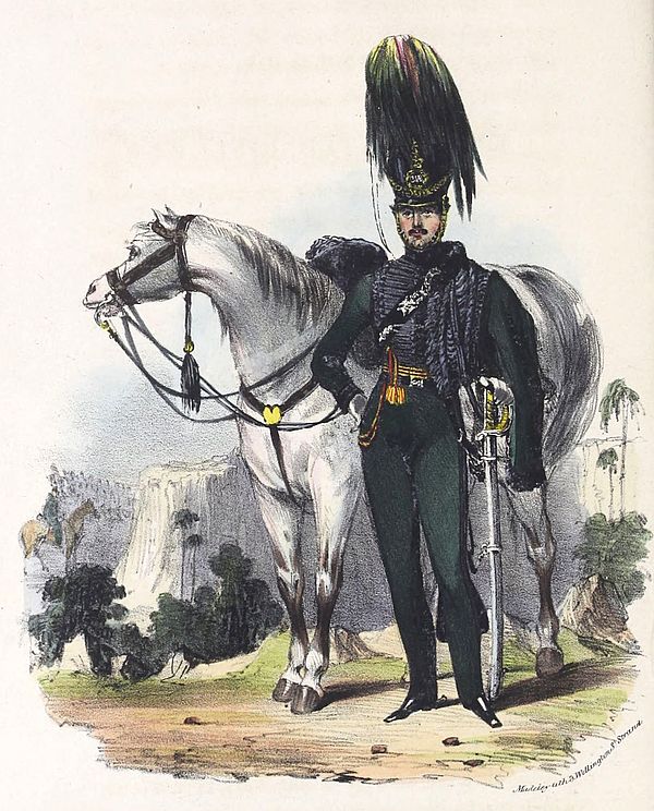 A rebellion breaking out on the frontiers of the colony, a squadron of the Eighth Light Dragoons, the flank companies of the regiment in garrison, and the Cape Corps, were detached, under Brigadier-General Vandeleur, to suppress the insurrection, and were employed in very arduous duties for some time. At this period, a portion of the Cape Corps was mounted, and employed as orderlies at head-quarters, as guides, and for the carrying of despatches; in performing these duties, they were found very useful.