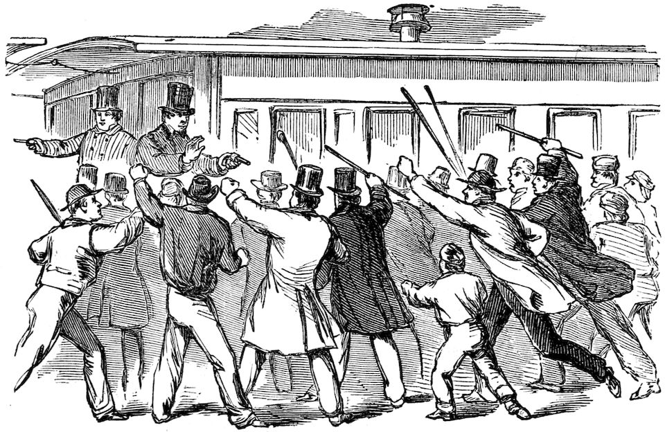 Public excitement continued on the increase; the public were waiting with all anxiety for a report from the pursuing officers, when, on Friday night, at a late hour, a dispatch was received from Providence, intimating that the murderer had been tracked to a private house, where he had taken lodgings, and would be arrested during the night. On Saturday, this news having been ventilated, the public excitement became greatly intensified, and it was anticipated that an effort would be made to lynch the prisoner on his arrival in the city. Crowds repaired to the railway depot, at Twenty-seventh street and Fourth avenue, also at Forty-second street, at the upper end of the Harlem Railroad. At 5 o’clock, P.M., the train arrived, containing the officers and their prisoner. But the multitudes who waited and looked for the prisoner were doomed to disappointment, for the officers had prepared themselves before reaching the city for avoiding any attack from infuriated mobs, by taking their places in the first or baggage car, thus avoiding suspicion. In this way they came down to the lower depot, and 10were transferred to an express wagon, and rolled down to the Second Ward station-house.